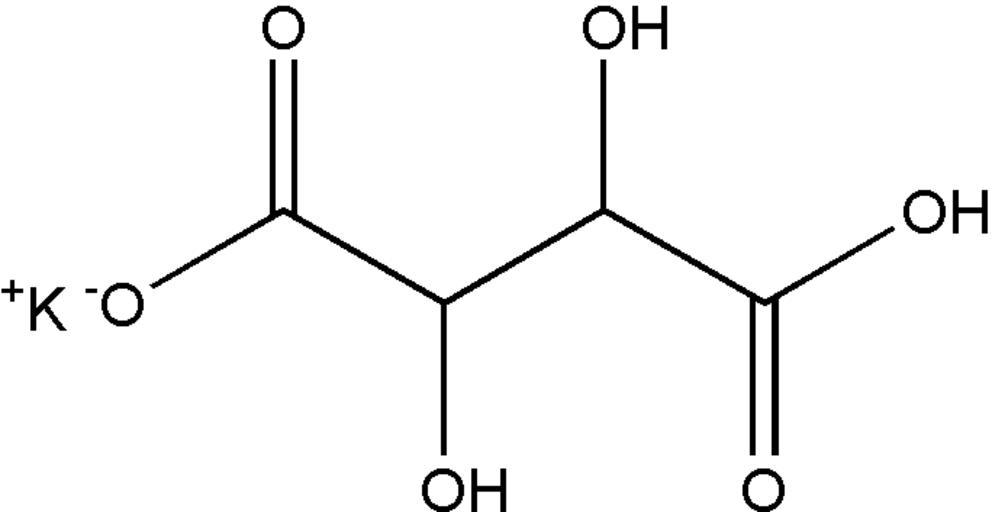 Keywords: Potassium bitartrate.png Structure of potassium bitartrate own 2006-08-25 hugo public domain Potassium compounds