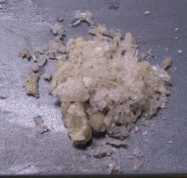 Keywords: Potassium carbonate impure.JPG en Impure potassium carbonate made from slow crystallization of potassium hydroxide obtained from nickel-cadmium batteries own Chemicalinterest Potassium carbonate