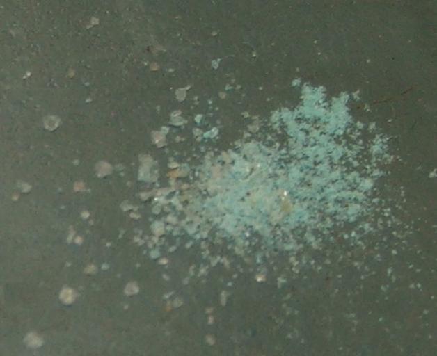 Keywords: Potassium sulfate 2.JPG en Potassium sulfate crystals interspersed with blue copper II sulfate own Chemicalinterest Potassium sulfate
