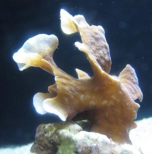 Keywords: Potato chip coral (Pavona cactus), Waikiki Aquarium.JPG en Potato chip coral Pavona cactus Waikiki Aquarium own Wmpearl 2013 Pavona cactus Waikiki Aquarium Cc-zero
