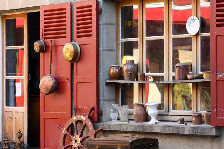 Keywords: pots pans copper pans vintage pots antique shop old cookware