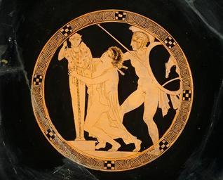 | Keywords: Pottery - Ajax and Cassandra.jpeg en Culture Attic Title Ajax and Cassandra interior Work Type red figure cup Date around 440-430 BCE Material ceramic Measurements 11 7 x 39 4 x 32 6 cm around 440-430 BCE Musée du Louvre Codrus Painter other versions PD-Art Uploaded with UploadWizard Cassandra |