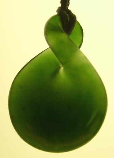 Keywords: Pounamu 4.jpg en Jade pendant Māori Style Twist; NewZealand Greenstone work own Sarang 2009-11-23 Greenstone jewellery Maori pendants