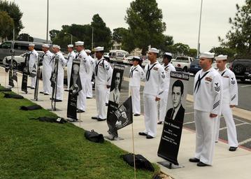 | Keywords: POW-MIA service 130920-N-HJ915-155.jpg en Sailors from the Naval Hospital Camp Pendleton 1st Class Petty Officers Association display the names and portraits of seven Navy hospital corpsmen still missing from the Vietnam War during a service of remembrance at the Prisoner of War/Missing in Action Memorial on National POW/MIA Recognition Day Naval Hospital Camp Pendleton held its 23nd annual POW/MIA Remembrance Ceremony on the front lawn of the hospital at the POW/MIA memorial site 2013-09-20 POW/MIA https //www dvidshub net/image/1025968 130920-N-HJ915-155 2013-09-25 20 07 CAMP PENDLETON CA US PD-USGov-Military-Navy Marine Corps Base Camp Pendleton National POW/MIA Recognition Day Images from DoD uploaded by Fæ |