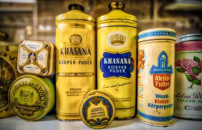 Keywords: powder body care old museum box cosmetics nostalgic hygiene tin can