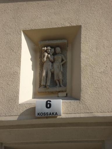 Keywords: Poznań ul. Kossaka 6.JPG en Emblem of the house 6 Kossaka Street in Poznań ca 1940-1944 Poznaniu ok 1940-1944 de Emblem des Hauses Kossaka Strasse 6 in Poznań um 1940-1944 own Jerzy 2008 Men and women in art Kossaka Street Poznań House numbers in Poland 6 house number Emblems