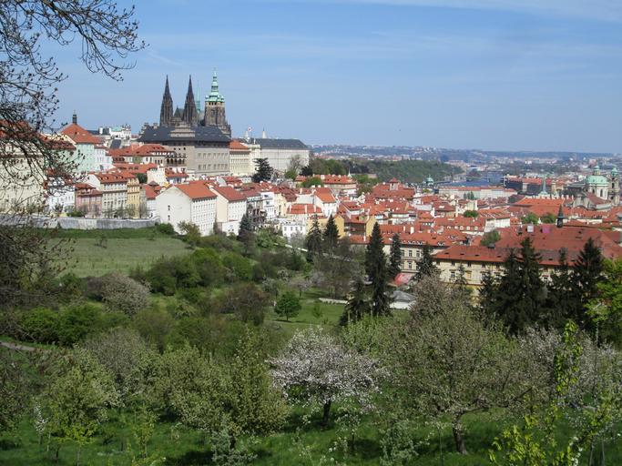 Keywords: prague city sightseeing vista czech republic spring trees blossom petrin