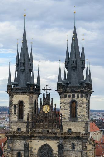 Keywords: prague detail history architecture tower cross sky clouds blue statue
