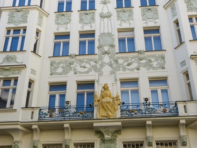 Keywords: prague old town city czech republic capital facade relief fig statue woman balcony
