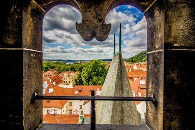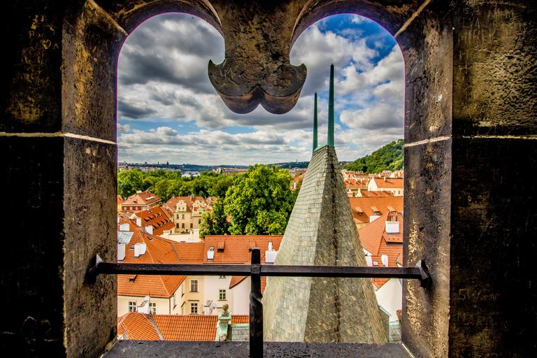 Keywords: prague window city czech republic old city detail roofs clouds trip sky