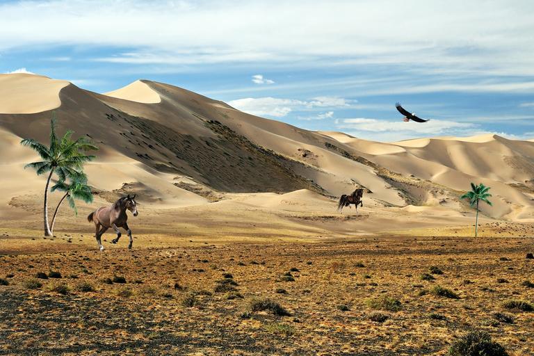 Keywords: prairie steppes mountains vegetation sand nature birds fly beauty horses animals eagles
