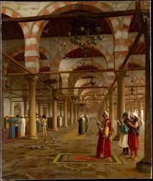 | Keywords: Prayer in the Mosque.jpg Artwork Creator Jean-Léon Gérôme Prayer in the Mosque alternate title 1871 Oil on canvas 88 9 × 74 9 cm Metropolitan Museum of Art Catharine Lorillard Wolfe Collection object history 1887 credit line http //www metmuseum org/toah/works-of-art/87 15 130 www metmuseum org http //thevelvetrocket com/2012/05/30/paintings-of-the-day-the-muslim-world-at-the-metropolitan-museum-of-art/ www thevelvetrocket com accession number http //thevelvetrocket files wordpress com/2012/05/jean-leon-gerome-prayer-in-the-mosque jpg PD-old-100 Orientalist paintings by Jean-Léon Gérôme Prayer in the Mosque Paintings with signatures upper right 1871 paintings Paintings of mosque interiors Islamic prayers in art 19th-century oil on canvas paintings in the Metropolitan Museum of Art 1870s paintings in the United States People with pigeons in art 19th-century paintings of building interiors Catharine Lorillard Wolfe Collection Uploaded with UploadWizard |