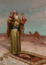 Keywords: 'Praying in the Desert' by Rudolf Ernst.jpg en Praying in the Desert by Rudolf Ernst oil on panel 33 x 23 5cm Albahie Auction House Katara Cultural Village Doha Qatar Rudolf Ernst PD-old-auto 1932 Rudolf Ernst