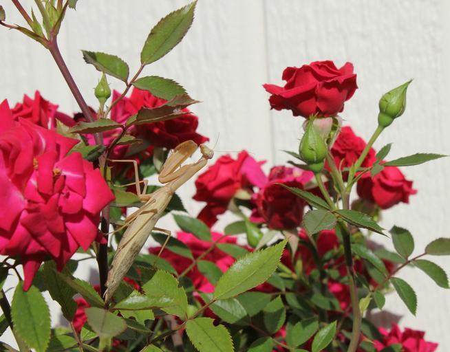 Keywords: praying mantis macro brown praying mantis bug nature insect roses