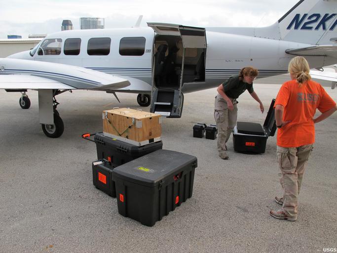 Keywords: deepwaterhorizon oilspill usgs equipment measurement personnel research outdoor USGS geologists Karen Morgan and Ginger Tiling-Range load imaging gear for a pre-oil reconnaissance flight. USGS captured more than 350 miles of Florida's coastline, from Cedar Key to Flamingo, with over 9,800 aerial photographs. The photographs document conditions along Florida's coastline in advance of the arrival of oil from the Deepwater Horizon incident. Visit usgs.gov/deepwater_horizon for more information related to the USGS efforts in the Gulf of Mexico. USGS geologists Karen Morgan and Ginger Tiling-Range load imaging gear for a pre-oil reconnaissance flight. USGS captured more than 350 miles of Florida's coastline, from Cedar Key to Flamingo, with over 9,800 aerial photographs. The photographs document conditions along Florida's coastline in advance of the arrival of oil from the Deepwater Horizon incident. Visit usgs.gov/deepwater_horizon for more information related to the USGS efforts in the Gulf of Mexico.