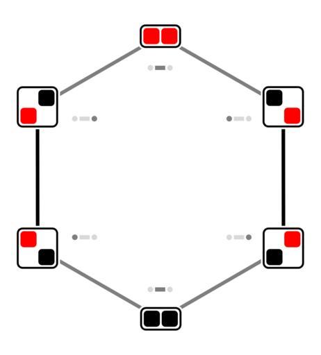 | Keywords: Predicate logic; 2 variables; implications lattice; ordered partitions.svg Implications between the A000629 2 6 statements with two variables in first-order logic The formulas are represented by ordered set partitions Black stands for the universal quantifier red for the existential one Inkscape own 2010 mate2code Predicate logic; 2 variables; lattice Hasse diagram Predicate logic; 2 variables; ordered partitions | ||||