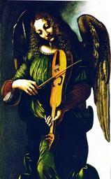 | Keywords: Predis, Giovanni Ambrogio de - An Angel in Green with a Vielle - 1506 — 08.jpg Artwork Leonardo's school Creator Giovanni Ambrogio de Predis Creator Ambrogio de Predis An Angel in green with a vielle Panel from the S Francesco Altarpiece Milan 1506 ” 08 oil on panel 116 × 61 cm National Gallery London Not on display http //www nationalgallery org uk/paintings/associate-of-leonardo-da-vinci-an-angel-in-green-with-a-vielle www nationalgallery org uk ” An Angel in Green with a Vielle Provenance originally San Francesco in Mil Santa Maria delle Grazie in Milano Italy was part of a larger altarpiece Since 1898 National Gallery London<ref>http //www nationalgallery org uk/paintings/associate-of-leonardo-da-vinci-an-angel-in-green-with-a-vielle/ /key-facts www nationalgallery org uk ” Key Facts</ref> Own book scan Zaczek Iaian Angels Star fire publishers part of The Foundry Creative Media Co Ltd London 2007 ISBN 978-1-184451-870-8 p 189 NG1661 Other versions References reflist PD-old-100 See also <gallery> File Ambrogio de Predis - Angel in green with a vielle jpg 267 × 576 pixels file size 30 K </gallery> Giovanni Ambrogio de Predis Angel in Green with a vielle Paintings of musical instruments Music-making angels 1506 paintings 1507 paintings 1508 paintings 16th-century paintings of angels Green clothing in art angel Women looking down in art Vielle 16th-century oil on panel paintings in the United Kingdom Virgin of the Rocks National Gallery scans by Mattes Work by Mattes 2010 Angels on the ground Angels in art in England Curly hair in art Scanned with HP Photosmart C5200 1500s religious paintings 1500s paintings from Italy 1500s paintings in the United Kingdom 16th-century religious paintings in the United Kingdom Paintings of angels in the United Kingdom |