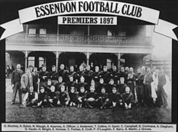 | Keywords: Prem1897.jpg  en wikipedia 2016 December 28 The 1897 Essendon Premiership team Fair use because it was taken more than 100 years ago and it is to display the reader with the knowledge of what the premiership-winning team looked like http //www essendonfc com au/history/premierships asp action show_team year 1897 Essendon F C website Taken in 1897 Unknown although probably someone in the Essendon F C PD-US-1923 PD-Australia Original upload log en wikipedia Prem1897 jpg wikitable - 2016-05-01 11 21 300×222× 23347 bytes Thejoebloggsblog Removed white edges - 2008-12-24 02 55 480×355× 48524 bytes Gibbsyspin The 1897 Essendon Premiership team Fair use because it was taken more than 100 years ago and it is to display the reader with the knowledge of what the premiership-winning team looked like http //www essendonfc com au History of Australian rules football Jim Anderson footballer Son Barry Colin Campbell Australian sportsman Arthur Cleghorn George Cochrane footballer Tod Collins Edgar Croft Dave Ferguson footballer born 1875 Charlie Forbes Hugh Gavin Joe Groves George Hastings footballer Gus Kearney Ted Kinnear George Martin footballer born 1875 Ned Officer Pat O'Loughlin George Stuckey Archie Sykes George Vautin Norman Waugh Harry Wright Australian footballer  |