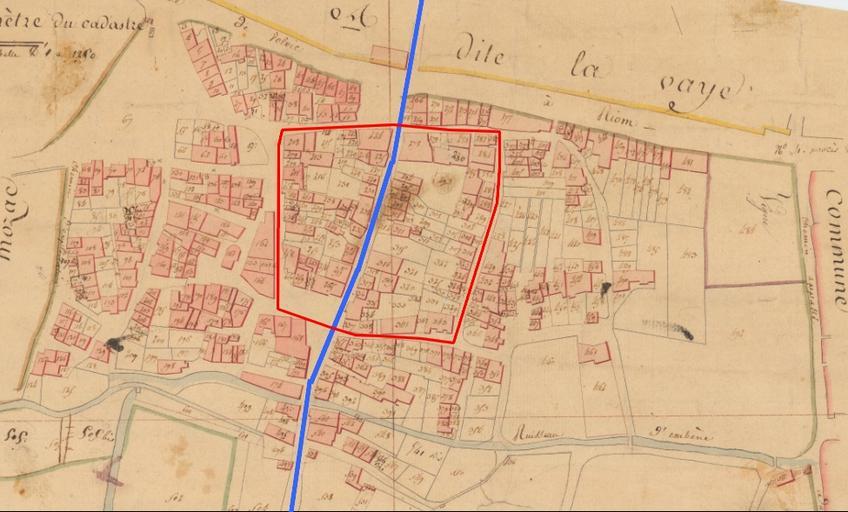 | Keywords: Première formation du bourg de Mozac.jpg fr Extrait du cadastre de Mozac section B dite du village de Mozac arpentée en mai 1809 par Monsieur Cariat géomètre du cadastre en bleu passage de l'ancienne voie romaine et en rouge délimitations de la première formation du bourg de Mozac Archives départementales du Puy-de-Dôme 53 Fi 729 M Cariat géomètre du cadastre 1809-05 PD-old-100 Mozac Cadastral maps of France Ancient Roman sites in Auvergne Maps of ancient Roman roads in France Old maps of Auvergne 1809 |