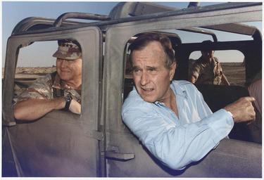 Keywords: President Bush rides in a HUMVEE with General H. Norman Schwarzkopf during his visit with troops in Saudi Arabia on... - NARA - 186424.tif Scope and content General notes 186424 Local identifier President 1989-1993 Bush Photograph Office 1989 - 1993 NARA-Author Valdez David 1949- Photographer 4097323 <br /> George Bush Library NLGB 1000 George Bush Drive West College Station TX 77845 1990-11-22 Record group Collection GB-WHPO Records of the White House Photograph Office 01/20/1989 - 01/20/1993 Record group ARC 1082 George H W Bush Presidential Photographs compiled 01/20/1989 - 01/20/1993 Series ARC 186364 File unit File unit ARC Variant control numbers NAIL Control Number NLB-WHPC-A-P17706 15 yes Other versions 128px PD-USGov NARA-cooperation Norman Schwarzkopf George H W Bush NARA TIF images with categorized JPGs |