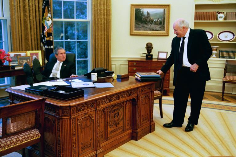 View Original:President_Bush_and_Vice_President_Cheney_in_the_Oval_Office.jpg (3072x2048)