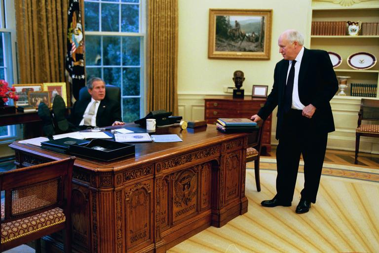 View Original:President_Bush_and_Vice_President_Cheney_in_the_Oval_Office.jpg (3072x2048)
