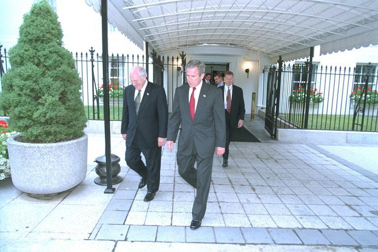 View Original:President_Bush_and_Vice_President_Cheney_Walk_to_the_Eisenhower_Executive_Office_Building.jpg (3072x2048)