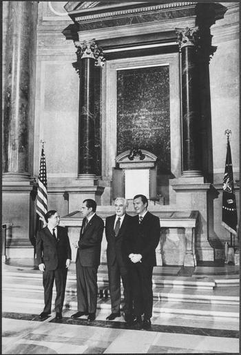 | Keywords: President Nixon greets individual members of the Bicentennial Commission at the National Archives - NARA - 194727.tif Scope and content Pictured President Richard M Nixon and members of the Bicentennial Commission names were not provided Subject Supreme Court Members General notes 194727 Local identifier NLRN-WHPO-6748-13 General Services Administration National Archives and Records Service Office of Presidential Libraries Office of Presidential Papers 01/20/1969 - ca 12/1974 Most Recent <br /> President 1969-1974 Nixon White House Photo Office 1969 - 1974 Most Recent NARA-Author Kightlinger Jack E 1932-2009 Photographer 8451338 <br /> Richard Nixon Library NLRN 18001 Yorba Linda Boulevard Yorba Linda CA 92886 1971-07-03 Record group Collection RN-WHPO White House Photo Office Collection Nixon Administration 01/20/1969 - 08/09/1974 Record group ARC 1179 Nixon White House Photographs compiled 01/20/1969 - 08/09/1974 documenting the period 08/08/1968 - 08/09/1974 Series ARC 194277 File unit File unit ARC Variant control numbers NAIL Control Number NLNP-WHPO-MPF-6748 13 yes Other versions NARA-cooperation PD-USGov Rotunda for the Charters of Freedom July 1971 in the United States Richard Nixon in 1971 Richard Nixon with people |