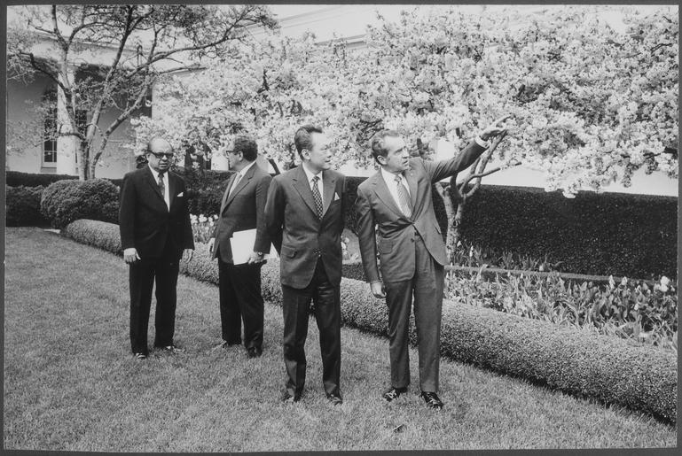 | Keywords: President Nixon greets South Vietnamese President Nguyen Van Thieu in front of "Marine One" helicopter - NARA - 194500.tif Scope and content Pictured Richard M Nixon Nguyen Van Thieu Subject Heads of State - S E Asia General notes 194500 Local identifier NLRN-WHPO-E0589-11A General Services Administration National Archives and Records Service Office of Presidential Libraries Office of Presidential Papers 01/20/1969 - ca 12/1974 Most Recent <br /> President 1969-1974 Nixon White House Photo Office 1969 - 1974 Most Recent NARA-Author Schumacher Karl H Photographer 8451339 <br /> Richard Nixon Library NLRN 18001 Yorba Linda Boulevard Yorba Linda CA 92886 1973-04-10 Record group Collection RN-WHPO White House Photo Office Collection Nixon Administration 01/20/1969 - 08/09/1974 Record group ARC 1179 Nixon White House Photographs compiled 01/20/1969 - 08/09/1974 documenting the period 08/08/1968 - 08/09/1974 Series ARC 194277 File unit File unit ARC Variant control numbers NAIL Control Number NLNP-WHPO-MPF-E0589 11A yes Other versions NARA-cooperation PD-USGov Nguyen Van Thieu Richard Nixon and Marine One |