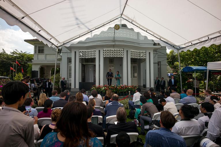 | Keywords: President Obama and Daw Aung San Suu Kyi Address Reporters in Rangoon.jpg en President Barack Obama with Chairperson of the National League for Democracy and Member of Parliament Aung San Suu Kyi addresses the international media at her residence in Rangoon Burma on November 14 2014 State Department photo by William Ng/ Public Domain 2014-11-14 15 37 02 http //www flickr com/photos/9364837 N06/15604209808/ U S Department of State other versions 16 797310 96 144104 PD-USGov PD-USGov Relations of Myanmar and the United States Uploaded with UploadWizard |