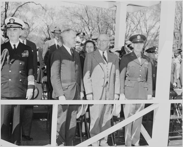 | Keywords: President Truman attends the Army Day parade in Washington, D. C. He is on the reviewing stand between two... - NARA - 199605.jpg Scope and content General notes 199605 Local identifier National Archives and Records Administration Office of Presidential Libraries Harry S Truman Library 04/01/1985 - NARA-Author Rowe Abbie 1905-1967 Photographer 8451352 <br /> Harry S Truman Library NLHST 500 West U S Highway 24 Independence MO 64050-1798 1947-04-07 Record group Collection HST-AVC Audiovisual Collection 1957 - 2006 Record group ARC 1207 Photographs Relating to the Administration Family and Personal Life of Harry S Truman compiled 1957 - 2004 documenting the period 1849 - 2004 Series ARC 198606 File unit File unit ARC Variant control numbers NAIL Control Number NLT-AVC-PHT-73 2450 Other versions <gallery> File President_Truman_attends_the_Army_Day_parade_in_Washington _D _C _He_is_on_the_reviewing_stand_between_two _-_NARA_-_199605 tif tif File President_Truman_attends_the_Army_Day_parade_in_Washington _D _C _He_is_on_the_reviewing_stand_between_two _-_NARA_-_199605 jpg jpg </gallery> NARA-cooperation PD-USGov Check categories-NARA 2011 September 20 Photographs by Abbie Rowe Black and white photographs William D Leahy Margaret Truman |