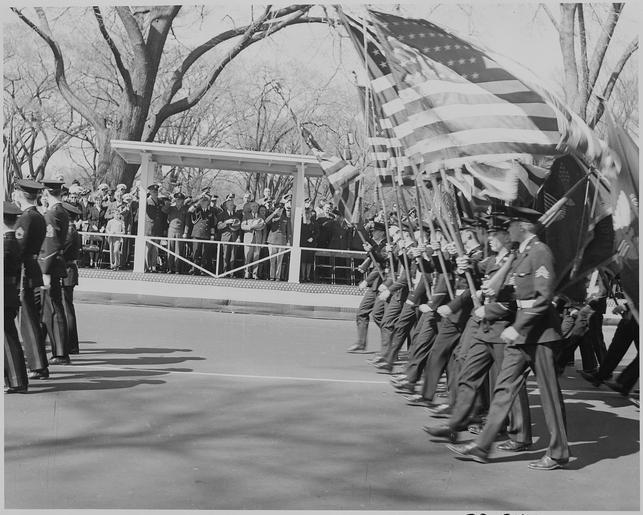 | Keywords: President Truman attends the Army Day parade in Washington, D. C. He is viewing the parade from the reviewing stand. - NARA - 199610.tif Scope and content General notes 199610 Local identifier National Archives and Records Administration Office of Presidential Libraries Harry S Truman Library 04/01/1985 - NARA-Author Rowe Abbie 1905-1967 Photographer 8451352 <br /> Harry S Truman Library NLHST 500 West U S Highway 24 Independence MO 64050-1798 1947-04-07 Record group Collection HST-AVC Audiovisual Collection 1957 - 2006 Record group ARC 1207 Photographs Relating to the Administration Family and Personal Life of Harry S Truman compiled 1957 - 2004 documenting the period 1849 - 2004 Series ARC 198606 File unit File unit ARC Variant control numbers NAIL Control Number NLT-AVC-PHT-73 2455 yes Other versions <gallery> File President_Truman_attends_the_Army_Day_parade_in_Washington _D _C _He_is_viewing_the_parade_from_the_reviewing_stand _-_NARA_-_199610 tif tif File President_Truman_attends_the_Army_Day_parade_in_Washington _D _C _He_is_viewing_the_parade_from_the_reviewing_stand _-_NARA_-_199610 jpg jpg </gallery> NARA-cooperation PD-USGov Photographs by Abbie Rowe Black and white photographs NARA TIF images with categorized JPGs |