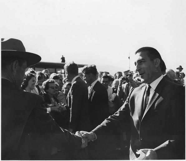 | Keywords: Presidential party at the park - NARA - 286006.tif Scope and content Pictures of Kennedy in a group of tourists; Kennedy Udall and McGee shaking hands; Udall observing a crowd; Kennedy and Udall squinting into the sun at the foot of the airplane stairs General notes 286006 Local identifier Department of the Interior National Park Service Midwest Region 06/1962 - NARA's Central Plains Region Kansas City NREA 400 West Pershing Road Kansas City MO 64108 1963 Record group Record Group 79 Records of the National Park Service 1785 - 2006 Record group ARC 408 General Files compiled 1951 - 1964 Series ARC 285987 File unit File unit ARC Variant control numbers NAIL Control Number NRE-79-MR GF -1265 yes Other versions <gallery> File Presidential_party_at_the_park_-_NARA_-_286006 tif tif File Presidential_party_at_the_park_-_NARA_-_286006 jpg jpg </gallery> NARA-cooperation PD-USGov NARA TIF images with categorized JPGs Stewart Udall |