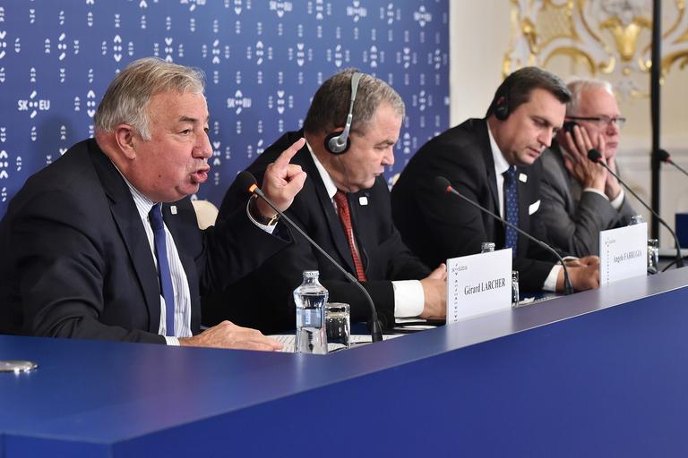 Photo Rastislav Polak eu ec eu2016sk slovakia pressk council presidency reduta vivaeuropaconcert castle danubiana bratislava airport cityhall agrifish summitbratislava2016 cost fac parliamentarysummit Press Conference - Bratislava Informal Parliamentary Summit 2016-10-07 (30057420432).jpg French Senate Mr Gérard Larcher President - House of Representatives of Malta Mr Angelo Farrugia Speaker - National Council of the Slovak Republic Mr Andrej Danko Speaker Of The National Council of The Slovak Republic- Estonian Parliament Mr Eiki Nestor Photo Rastislav Polak https //www flickr com/photos/142675453 N02/30057420432/ Press Conference - Bratislava Informal Parliamentary Summit_2016-10-07 2016-10-07 13 31 https //www flickr com/people/142675453 N02 EU2016 SK cc-zero eu2016sk https //flickr com/photos/142675453 N02/30057420432 2016-10-13 22 31 00 cc-zero Slovak Presidency of the Council of the European Union 2016 Politicians of Europe |
