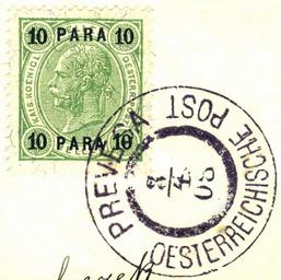 Keywords: Prevesa Austrian 5 10 para 1908.jpg Levant Post Offices 10 para/heller used in the Post Office of Preveza Catalogue Sc Mi 47 green Type of cancellation N-G 5 Date of cancellation 8 4 1908 el Γραμματόσημο της Αυστρο-ουγγρικής Αυτοκρατορίας για χρήση σε Ταχυδρομικά Γραφεία της Ανατολής 10 αράδες/heller ράσινο σφραγισμένο στο ταχυδρομικό γραφείο της Πρέβεζας Κατάλογος Sc Mi 47 ράσινο Τύ ος σφραγίδας N-G 5 Ημερομηνία σφραγίδας 8 4 1908 Stamp issued in 1905; Postmarked in 1908 en Nikos D Karabelas stamp collection Preveza Greece el Συλλογή γραμματοσήμων ίκου Δ Καράμ ελα Πρέβεζα Institution Actia Nicopolis Austro-Hungarian postal authorities PD-old-100 Template Cc-by-4 0 DEFAULTSORT Prevesa Austrian Type 5 Stamps of Austria for the Ottoman Empire Postmarks of Greece Postal history of Preveza 1905 stamps of Austria Preveza Actia Nicopolis Foundation Stamp Collection Stamps of Austrian post offices abroad |