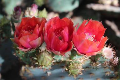 Keywords: prickly pear blooms red-orange cactus desert arizona southwest springtime spring buds april blooming