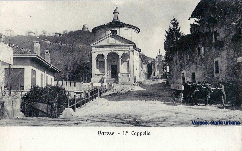 Keywords: A sinistra la chiesa dell'Immacolata Concezione (1609) sullo sfondo l'Arco del Rosario (1607) da cui si diparte la Via Sacra: entrambe sono opera dell'architetto Giuseppe Bernasconi. A destra la cascina Morona. varese primacappella