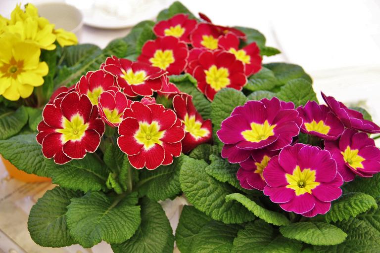 | Keywords: primrose pots signs of spring colorful primroses spring early bloomer flowers fragrant potted plants time of year red and yellow yellow primrose red primrose purple primula primrose spring plant primula plant primrose greenhouse primulaceae close primrose flowers partial view detail scented plant bloom primrose in bloom petals nature petite small |
