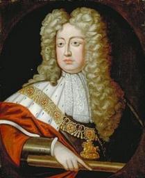 Keywords: people indoor Prince George of Denmark and Norway, Duke of Cumberland PC Danish: Prins Jørgen, hertug af Cumberland (2 April 1653 – 28 October 1708) was the husband of Queen Anne of Great Britain. Prince George was born Prince Jørgen, in Copenhagen, the third son and sixth child of Frederick III of Denmark and Sophie Amalie of Brunswick-Lüneburg. The young prince's governor from 1661 to 1665 was Otto Grote.[1] In 1674 he was a candidate for the Polish elective throne, backed by King Louis XIV of France.[2] However, George was brought up as a strict Lutheran, and accepting the Polish throne would mean conversion to Roman Catholicism.[1] George was considered a suitable partner for Anne, Denmark being, like Britain, a Protestant country; at that time, it was not considered likely that Anne would become Queen. Anne's uncle Charles II of England had decided that Anne should marry George and her father James, duke of York agreed. Louis XIV was content, but Anne's brother-in-law, William of Orange, was not. George and Anne were married on 28 July 1683, at St. James's Palace, London.[1] Called George in England, the prince was subsequently created an English subject and a Knight of the Garter, and was created Duke of Cumberland, Earl of Kendal and Baron Wokingham.[1] George was given a revenue of ƒ10,000 a year, while the Parliament voted Anne ƒ20,000 a year.[3] Although he was Protesant all his life, he never became a member of the Church of England, which was headed by his wife during her reign - he remained Lutheran even after her accession and he had his own personal chapel.[1] His marriage to Anne was successful, although from 18 pregnancies between 1684 and 1700 only one son, William, Duke of Gloucester, survived infancy, only to die of smallpox in 1700 at the age of 11. As with many other members of the royals and nobility, this poor infant survival rate is fairly strong evidence that Prince George suffered from syphilis. Another theory is that Anne passed haemolytic disease of the newborn to her babies (Rhesus disease). The social and political grouping centred on Prince George and Princess Anne was known as the "Cockpit Circle" after the Cockpit, their London residence (part of the Palace of Whitehall on the site of what is now Downing Street in Westminster). Anne's older sister Mary (later Queen Mary II) had moved to the Netherlands after her marriage to William III of Orange; Protestant opposition to James was therefore increasingly focused on Anne and George instead of Mary, the heiress presumptive. In 1688 the decision of William, Mary, George and Anne to desert the embattled James II was instrumental in whittling away the king's legitimacy and paved the way for the Glorious Revolution of 1689, which was led by William and supported by George, at the nominal head of the Lord High Admiral's Regiment, disbanded the following year. The Holland Regiment took its place as 3rd Regiment of Foot with Prince George as its honorary colonel. William had apparently refused to attend James II's coronation in 1685 because George, as a senior member of a European royal family, would outrank him as elected stadholder of a republic; this mistrust was overcome during the revolution of 1688–89 but dogged relations between George and William during the latter's reign. Some degree of reconciliation was achieved on Queen Mary's sudden and unexpected death from smallpox in 1694; but George did not play a senior role in government until his wife Anne succeeded William in 1702. George was an able administrator and military strategist, and as Lord High Admiral, 1702–08, officially headed the Royal Navy in support of the military activities of Anne's favourite, the Captain-General Lord John Churchill, 1st Duke of Marlborough. On George's death in 1708, Anne was disconsolate. Although she refused initially to entrust the duties of the Lord High Admiral to a commission, she was effectively forced to when she found herself unable to bring herself to sign papers in George's stead. Charles II, Anne's uncle, famously said of Prince George, on the occasion of his marriage to Anne, "I have tried him drunk, and I have tried him sober; and there is nothing in him". George was considered a fine-looking man, being tall and blond. He was neither clever nor learned - he represented a simple man without envy or ambition.[3] He was not seen as one of the most colourful political characters of his day, but he was a skilled strategist and an able administrator, and a loyal and supportive husband to Queen Anne. By all accounts their marriage was a devoted and loving one in spite of their earlier personal tragedies. His official portrait, signed by Sir Godfrey Kneller, is at the National Maritime Museum, Greenwich, London. George I of Greece is also sometimes known as "Prince George of Denmark" (1845–1913), in a confusion of his regnal name, George, and his pre-regnal title, Prince William of Denmark. He was the brother of Alexandra of Denmark, consort of Edward VII. Prince George of Denmark and Norway, Duke of Cumberland PC Danish: Prins Jørgen, hertug af Cumberland (2 April 1653 – 28 October 1708) was the husband of Queen Anne of Great Britain. Prince George was born Prince Jørgen, in Copenhagen, the third son and sixth child of Frederick III of Denmark and Sophie Amalie of Brunswick-Lüneburg. The young prince's governor from 1661 to 1665 was Otto Grote.[1] In 1674 he was a candidate for the Polish elective throne, backed by King Louis XIV of France.[2] However, George was brought up as a strict Lutheran, and accepting the Polish throne would mean conversion to Roman Catholicism.[1] George was considered a suitable partner for Anne, Denmark being, like Britain, a Protestant country; at that time, it was not considered likely that Anne would become Queen. Anne's uncle Charles II of England had decided that Anne should marry George and her father James, duke of York agreed. Louis XIV was content, but