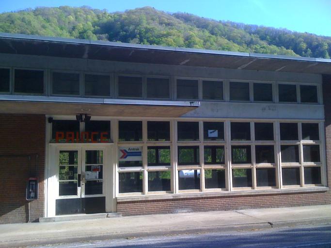 | Keywords: Prince West Virginia train station front.jpg  en Front entrance to the train station in Prince West Virginia own 2011-04-21 en Christopher Ziemnowicz releases all rights but a photo credit would be appreciated if this image is used anywhere other than Wikipedia Please leave a note at Wikipedia http //en wikipedia org/w/index php title User_talk CZmarlin action edit section new here Thank you thumb left Parking next to the platform thumb center The platform looking east thumb left Detail of antique luggage cart on the platform thumb center Back of the building along the tracks facing west thumb left Back of the building along the platform looking east thumb center upright Amtrak station sign on east wall 37 51 4 0 N 81 3 64 0 W alt 369 732601_source exif_heading Prince Amtrak station  |