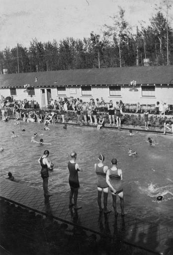 Keywords: alberta summer swimming pool blackandwhite monochrome outdoor black and white ca. 1915, A6677. ca. 1915, A6677.
