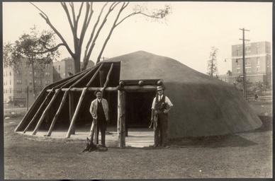 | Keywords: smithsonian institution smithsonianinstitution national museum of the american indian nationalmuseumoftheamericanindian outdoor monochrome Photographer: Unknown, Non-Indian  Subject: David Sinclair, Non-Indian        Charles O. Turbyfill (Charles Orr Turbyfill), Non-Indian, 1888-1966        Museum of the American Indian, Research Branch (Annex), 1926-1989  Date Created: October 1936  Catalog Number: P19170  Format: Albumen print  Dimensions: 4.5 x 6.5 in.  Collection History: Presumably commissioned by George Heye to document the early work of the Museum of the American Indian.  Description: From L: Charles Turbyfill (1888-1966, MAI staff member) and David Sinclair, custodian, posed in front of partially covered wooden framework of the Hidatsa earth lodge in course of construction on Research Branch grounds, Museum of the American Indian/Heye Foundation, with fence and apartment buildings in the background  Place: Research Branch, Museum of the American Indian/Heye Foundation; New York City, Bronx, Pelham Bay; Bronx County; New York; USA  Site Name: Research Branch, Museum of the American Indian/Heye Foundation  Culture/People: Minitari (Hidatsa),Non-Indian  Culture Hierarchy: Northern Plains>Minitari (Hidatsa)  Persistent URL:http://www.americanindian.si.edu/searchcollections/item.aspx?irn=306684  Repository:National Museum of the American Indian  View more collections from the Smithsonian Institution. Photographer: Unknown, Non-Indian  Subject: David Sinclair, Non-Indian        Charles O. Turbyfill (Charles Orr Turbyfill), Non-Indian, 1888-1966        Museum of the American Indian, Research Branch (Annex), 1926-1989  Date Created: October 1936  Catalog Number: P19170  Format: Albumen print  Dimensions: 4.5 x 6.5 in.  Collection History: Presumably commissioned by George Heye to document the early work of the Museum of the American Indian.  Description: From L: Charles Turbyfill (1888-1966, MAI staff member) and David Sinclair, custodian, posed in front of partially covered wooden framework of the Hidatsa earth lodge in course of construction on Research Branch grounds, Museum of the American Indian/Heye Foundation, with fence and apartment buildings in the background  Place: Research Branch, Museum of the American Indian/Heye Foundation; New York City, Bronx, Pelham Bay; Bronx County; New York; USA  Site Name: Research Branch, Museum of the American Indian/Heye Foundation  Culture/People: Minitari (Hidatsa),Non-Indian  Culture Hierarchy: Northern Plains>Minitari (Hidatsa)  Persistent URL:http://www.americanindian.si.edu/searchcollections/item.aspx?irn=306684  Repository:National Museum of the American Indian  View more collections from the Smithsonian Institution. |
