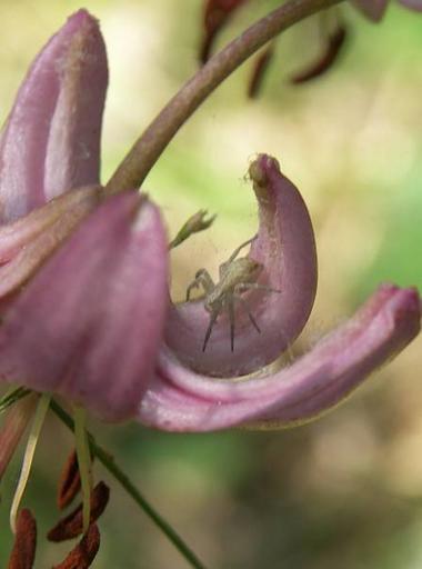 Keywords: Přírodní park Baba006.jpg cs Přírodní park Baba own I Sáček senior Přírodní park Baba - plants Close-ups of Lilium martagon flowers Unidentified Araneae