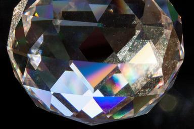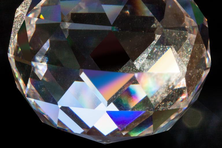 Keywords: prism ball geometric body decorative decoration glass refraction rainbow colors mirroring spectrum color spectrum sun light bright shine through macro