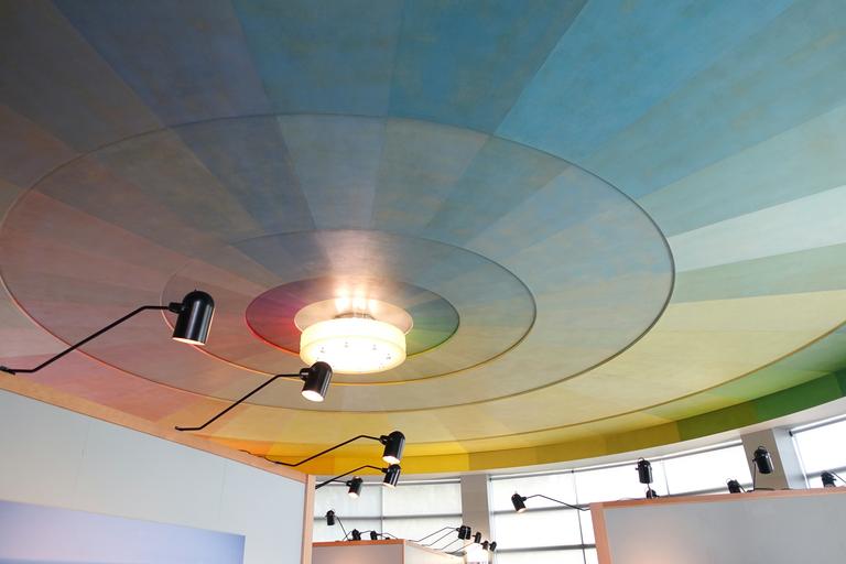 Keywords: Prismatarium ceiling - Aquatic Park Bathhouse - San Francisco, CA - DSC04145.jpg en Ceiling of the Prismatarium in the Aquatic Park Bathhouse - San Francisco California USA This work was created in 1939 by Hilaire Hiler 1898-1966 and is in the public domain because it was a product of the United States Works Progress Administration WPA 2015-05-21 16 54 30 own Daderot other versions PD-USGov-WPA cc-zero Prismatarium |