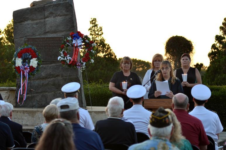 Keywords: Prison of War, Missing in Action Remembrance ceremony 130920-N-IS680-161.jpg en Colleen Lewis senior vice president of the Ladies Auxiliary at VFW Post 392 in Virginia Beach reads off the names of 45 military service members from Virginia who were held as prisoners of war or missing in action since Vietnam during a Prison of War Missing in Action Remembrance ceremony at the Flame of Hope Memorial at Naval Air Station Oceana U S Navy photo by Mass Communication Specialist 2nd Class Alysia Hernandez/Released 2013-09-20 Petty Officer 2nd Class Alysia Hernandez https //www dvidshub net/image/1026987 130920-N-IS680-161 2013-09-27 18 28 VIRGINIA BEACH VA US PD-USGov-Military-Navy People at Naval Air Station Oceana Images from DoD uploaded by Fæ |