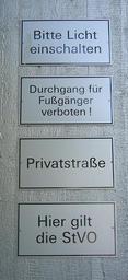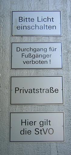 | Keywords: Privatstraße.JPG Munich > Büropark Kustermann Private street between Balanstr and Rosenheimer Str own 2006-07-03 User Mattes FoP-Germany Signs in Munich Road signs in Bavaria Munich Taken with Panasonic Lumix DMC-LC50 Work by Mattes 2006 User Mattes/Contributions/Topics/Germany/München User Mattes/Contributions/Topics/banners coat of arms flags logos seals and signs German language road signs | ||||