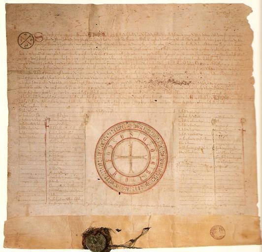 Keywords: Privilegio rodado de Alfonso X amparando y concediendo exenciones y privilegios al monasterio de San Clemente de Sevilla (10-1-1284).jpg Privilegio rodado emitido por el rey Alfonso X de Castilla el día 10 de enero de 1284 por el que ampara al monasterio de San Clemente de Sevilla y le concede una serie de privilegios exenciones y propiedades territoriales El documento se custodia en el monasterio de San Clemente de Sevilla provincia de Sevilla España 1284 cite book VV AA Real Monasterio de San Clemente Historia Tradición y Liturgia 1999 Obra Social y Cultural Cajasur 84-7959-274-5 source PD-old-100 Uploaded with UploadWizard Privilegios rodados de Alfonso X de Castilla Archivo del monasterio de San Clemente de Sevilla Andalusia in the 13th century 1284 |