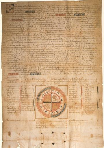 Keywords: Privilegio rodado de Fernando IV de Castilla confirmando los privilegios que Alfonso X y Sancho IV concedieron al monasterio de San Clemente de Sevilla (13-8-1310).jpg Privilegio rodado emitido por el rey Fernando IV de Castilla el día 13 de agosto de 1310 por el que confirma los privilegios que su abuelo Alfonso X de Castilla y su padre Sancho IV de Castilla concedieron al monasterio de San Clemente de Sevilla Al mismo tiempo Fernando IV concedió a dicho monasterio nuevas exenciones y franquezas El documento se custodia en el monasterio de San Clemente de Sevilla provincia de Sevilla España 1310 cite book VV AA Real Monasterio de San Clemente Historia Tradición y Liturgia 1999 Obra Social y Cultural Cajasur 84-7959-274-5 source PD-old-100 Uploaded with UploadWizard Privilegios rodados de Fernando IV de Castilla Archivo del monasterio de San Clemente de Sevilla Andalusia in the 14th century 1310 |