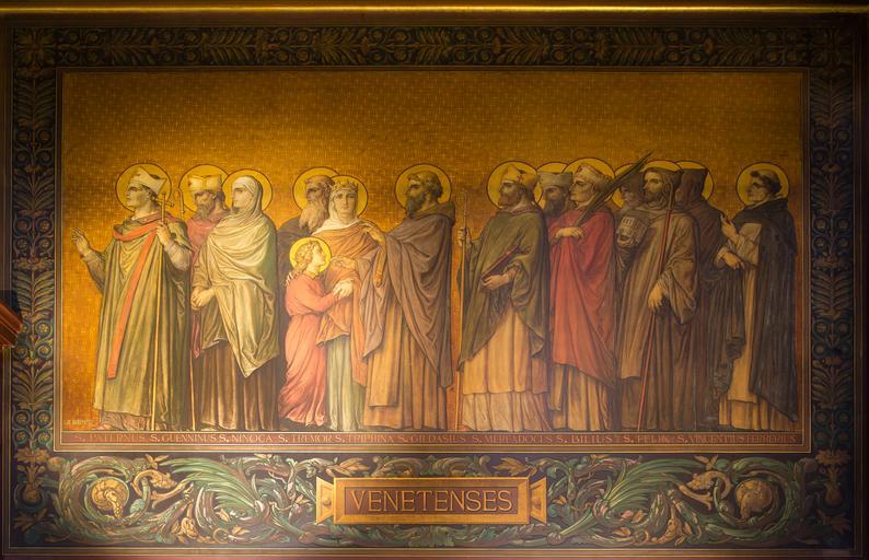 | Keywords: Procession des saints de Bretagne - diocèse de Vannes, cathédrale saint Pierre, Rennes, France.jpg Artwork Creator Alphonse Le Hénaff Diocèse de Vannes between 1871 1876 fresco Institution Cathédrale Saint-Pierre de Rennes Déambulatoire Venetenses caption bottom la Vannes S Paternus S Guenninus S Ninoca S Tremor S Triphina S Gildasius S Mereadocus S Bilius S Felix S Vincentius Ferrerius caption bottom la full form Sanctus Paternus Sanctus Guenninus Sanctus Ninoca Sanctus Tremor Sancta Triphina Sanctus Gildasius Sanctus Mereadocus Sanctus Bilius Sanctus Felix Sanctus Vincentius Ferrerius saint Patern de Vannes saint Guénin de Vannes saint Ninoca saint Trémeur sainte Tréphine saint Gilas le Sage saint Meriadec de Vannes saint Bille saint Felix saint Vincent Ferrier Le Hénaff signature ~ own <gallery> File Procession des saints de Bretagne - diocèse de Rennes cathédrale saint Pierre Rennes France jpg File Procession des saints de Bretagne - diocèse de Vannes cathédrale saint Pierre Rennes France jpg File Procession des saints de Bretagne - diocèse de Cornouaille cathédrale saint Pierre Rennes France jpg File Procession des saints de Bretagne - diocèse de Léon cathédrale saint Pierre Rennes France jpg </gallery> <gallery> File Procession des saints de Bretagne - diocèse de Tréguier cathédrale saint Pierre Rennes France jpg File Procession des saints de Bretagne - diocèse de Saint-Brieuc cathédrale saint Pierre Rennes France jpg File Procession des saints de Bretagne - diocèse de Saint-Malo cathédrale saint Pierre Rennes France jpg File Procession des saints de Bretagne - diocèse de Dol cathédrale saint Pierre Rennes France jpg </gallery> PD-old-auto CC-zero 1884 Wikimedia France - Fañch Assessments 1 Procession des saints de Bretagne Wikipedia takes Rennes 2012 Procession des saints de Bretagne Taken with Canon TS-E 17 mm F4L Featured pictures supported by Wikimedia France Roman Catholic Diocese of Vannes |